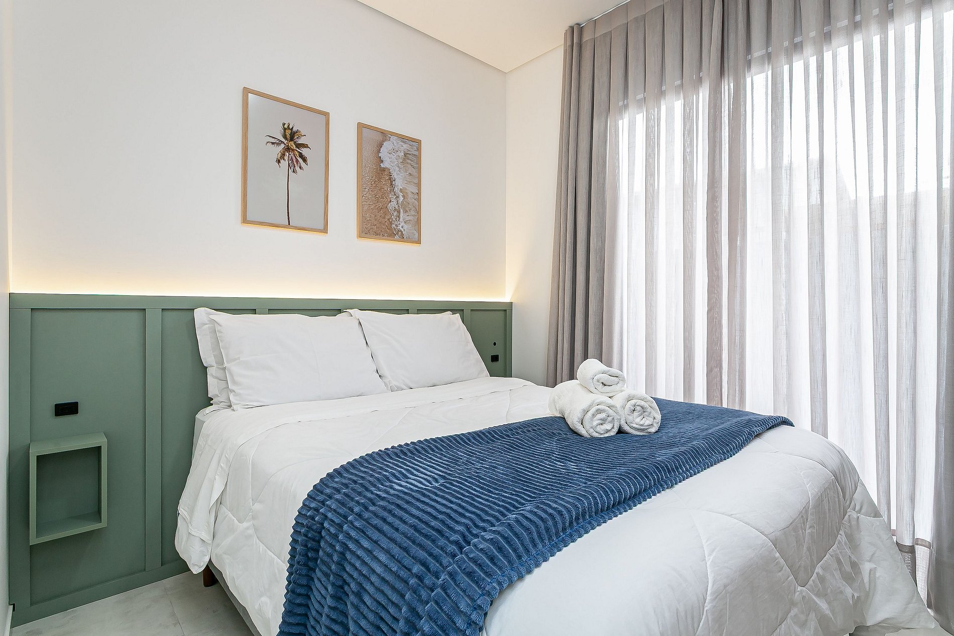 • Enxoval completo de roupas de cama e banho padrão de hotel.